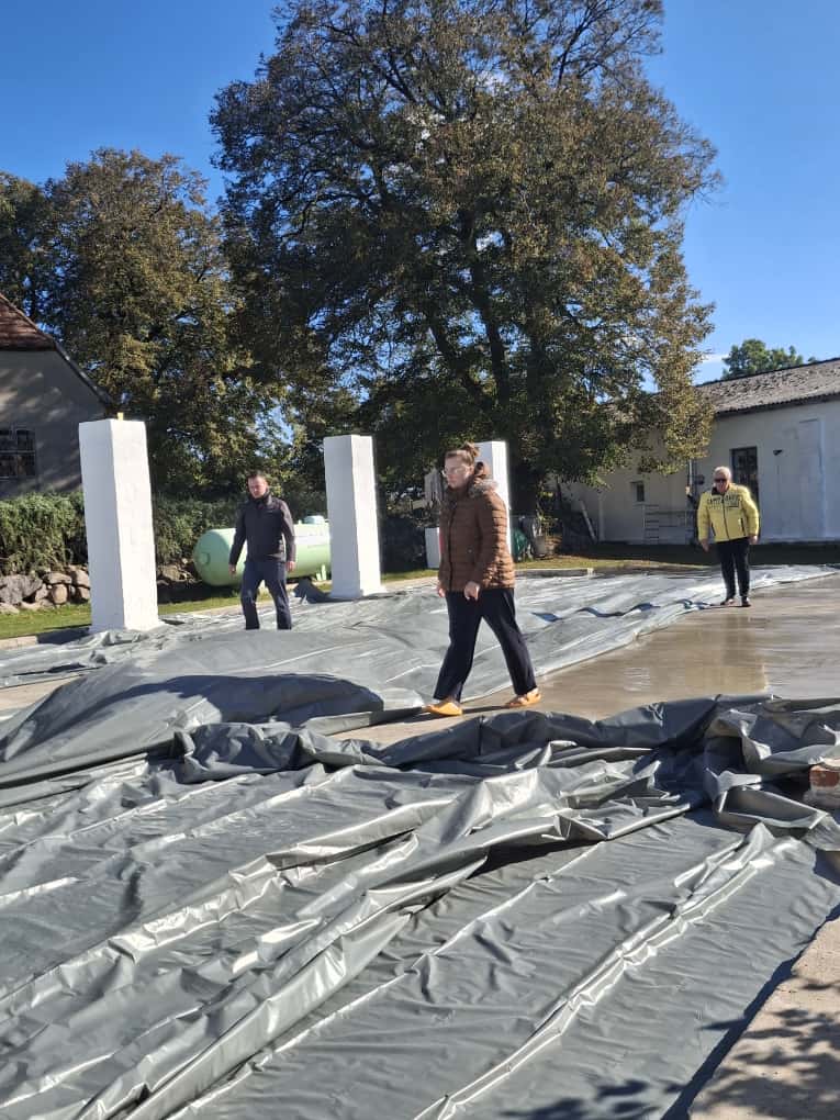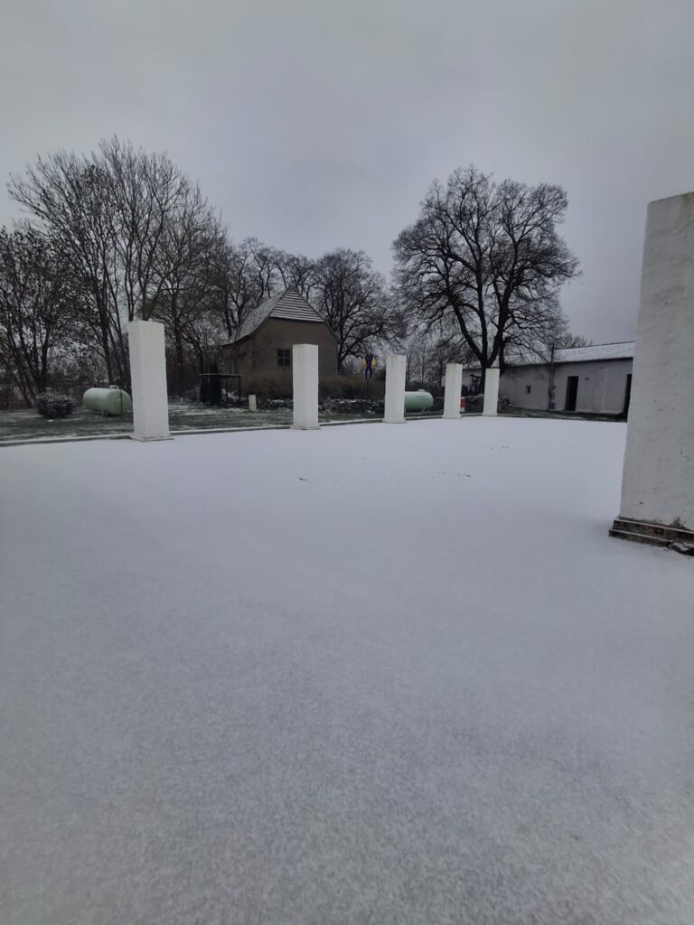 In Wrodow wächst derzeit ein neuer Treffpunkt heran, der Vereinen, Initiativen und allen Dorfbewohnerinnen und Dorfbewohnern künftig Raum für Begegnung, Kultur und gemeinsames Handeln bieten wird. Auf der bislang ungenutzten Fläche am Vereinsgebäude arbeiten Ehrenamtliche aus den Vereinen der Gemeinde mit großer Energie zusammen und verwandeln den Platz Schritt für Schritt in einen offenen Ort der Gemeinschaft. Die Fotos von Sylvester Antony fangen die besondere Aufbruchsstimmung ein und zeigen, wie viele Hände beteiligt sind, wie die Fläche gereinigt wird, wie der Beton anrollt, verteilt und geglättet wird und wie alle trotz Schneefall konzentriert weitermachen. Die winterliche Kulisse unterstreicht die Wärme des gemeinschaftlichen Engagements, das dieses Projekt trägt.